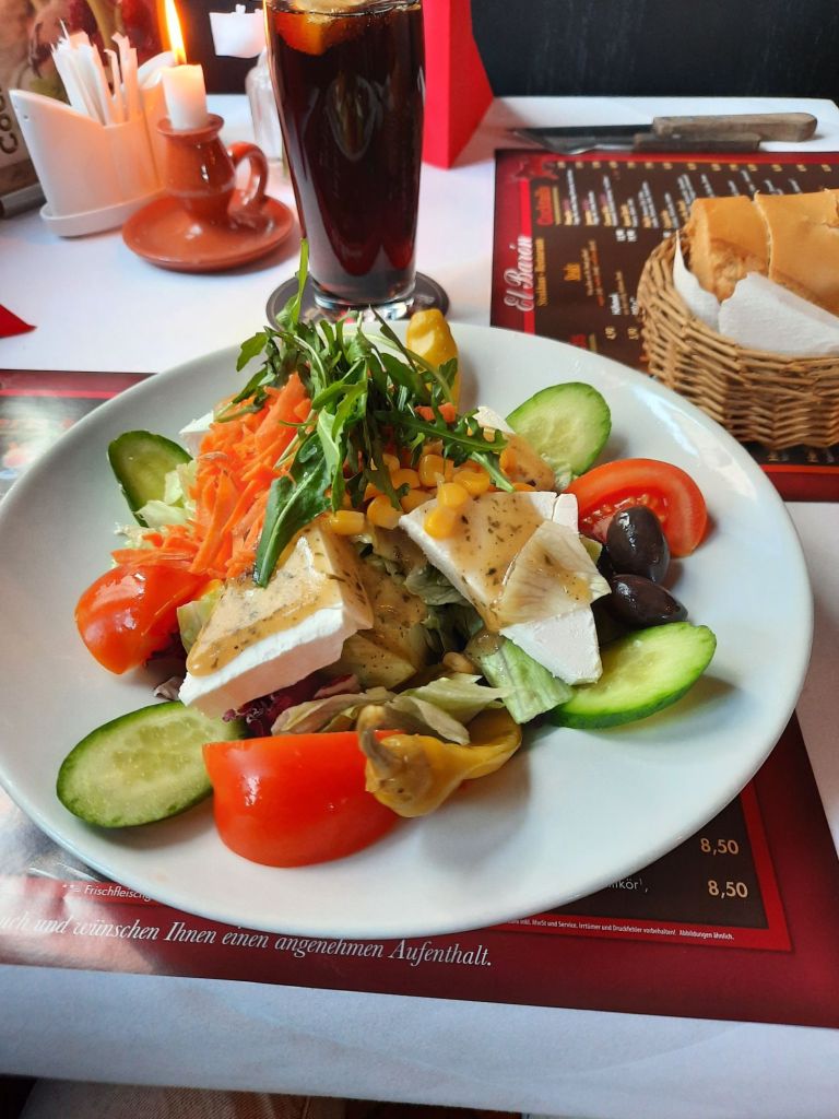 Zu Mittag speiste ich in einem Steakhaus am Luisenplatz 6 am Brandenburger Tor. Das El Barón kann ich wärmstens empfehlen. Ich wurde von einer sehr netten Bedienung verwöhnt, schon die Vorspeise war eigentlich eine komplette Mahlzeit und das Steak, das ich mir mit Bratkartoffeln bestellt hatte, war sehr lecker. Wie gesagt: Meine ganz klare Empfehlung! Hier mal ein Bildchen der Vorspeise, das Hauptgericht zeige ich euch lieber nicht, ihr würdet vor Neid nicht mehr in den Schlaf kommen!