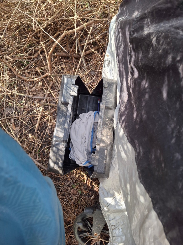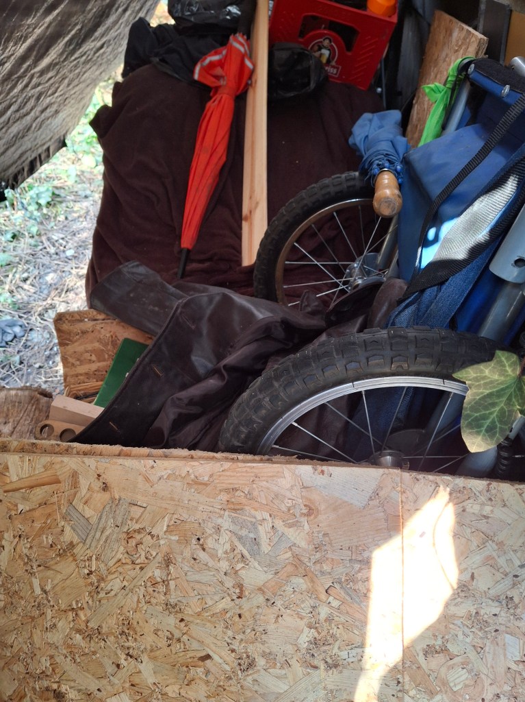 Außerdem fand ich einen Cache, der wohl mal als TB-Hotel gelegt wurde, nun aber als Herberge für einen Obdachlosen zu dienen schien und tatsächlich Krätzegefahr barg. Also genauer gesagt: Den eigentlichen Cache fand ich nicht, konnte mich also nicht im Logbuch verewigen. Ich bat den Owner, diesen Cache zu archivieren, da auch schon mehrere Vorlogger „Nicht gefunden“ geloggt hatten.