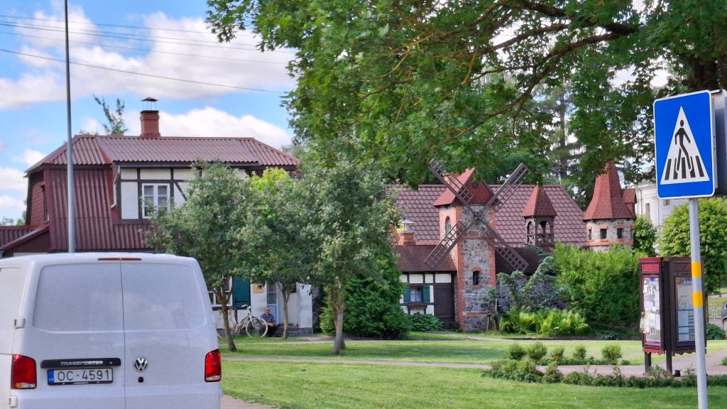 In der Kneipe, in der wir die Pelēkie zirņi löffelten, war ein sehr zutraulicher Kater, ein wunderschönes Tier, das sich auch streicheln ließ. Wir grübelten, ob er denn zu der Kneipe gehört und welche Rolle er da wohl spielen würde. Als sich das Tierchen dann draußen ans Tor setzte, kam Ejnar auf die Lösung: Der sollte Gäste anlocken! Leider habe ich kein Foto von ihm gemacht.