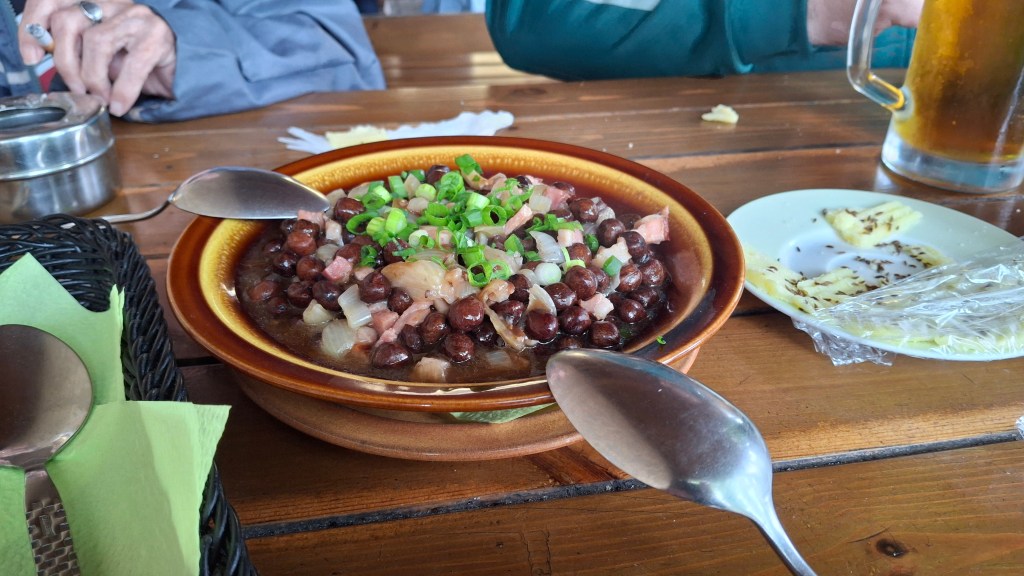 In Jurmala gingen wir, wie alle Touristen, natürlich auf die dortige Touristenmeile. Nein, wir gingen nicht, wir flanierten, schließlich haben wir Stil! Und Ejnar spendierte eine Portion Pelēkie zirņi, welches wir, ganz traditionell, zu dritt aus einer Schüssel löffelten.